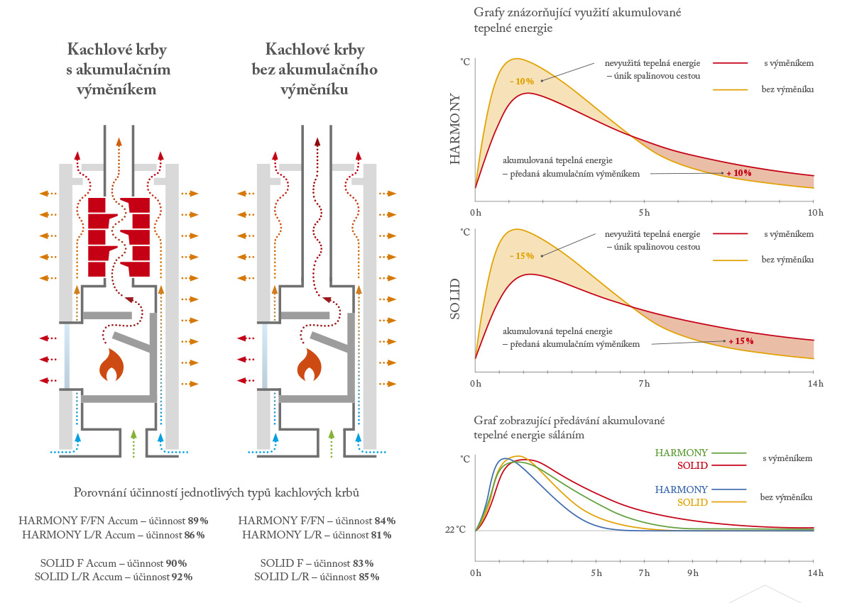 Kominek kaflowy SOLID F Accum jest również wyposażony w wydajny wymiennik przechowywania, co zwiększa ogólną wydajność kominka do 90%, a akumuluje energię cieplną dla jego dalszego przekazania